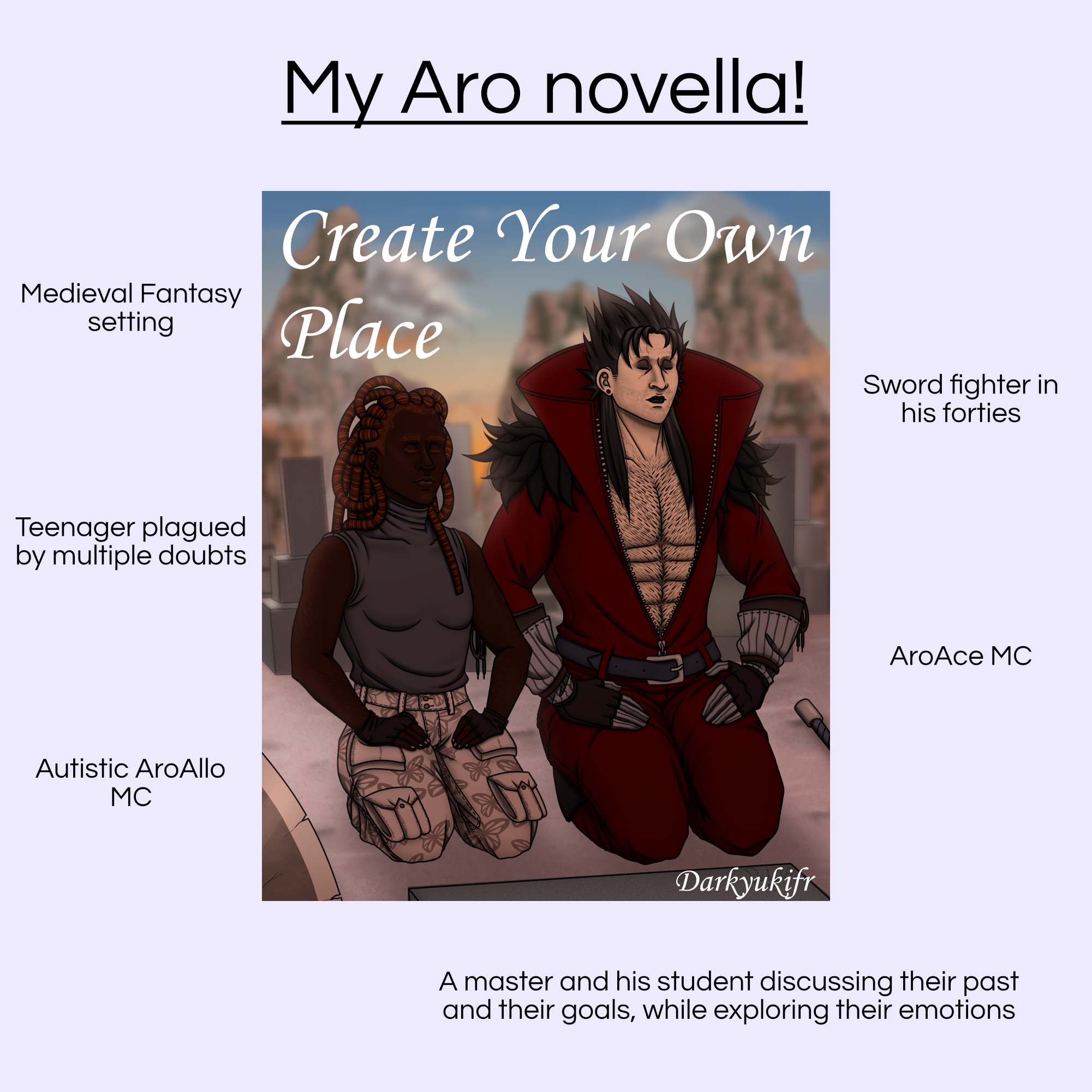 With Create Your Own Place, I wanted to highlight the intergenerational relationship between two aromantic characters, Archangelo and Dia, in a Medieval Fantasy setting. They are two of my main OCs and writing these words about their friendship felt really liberating!